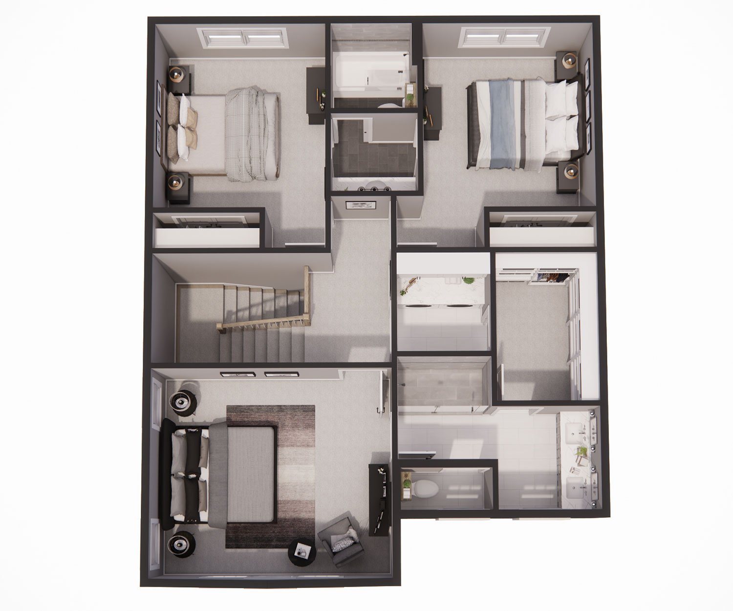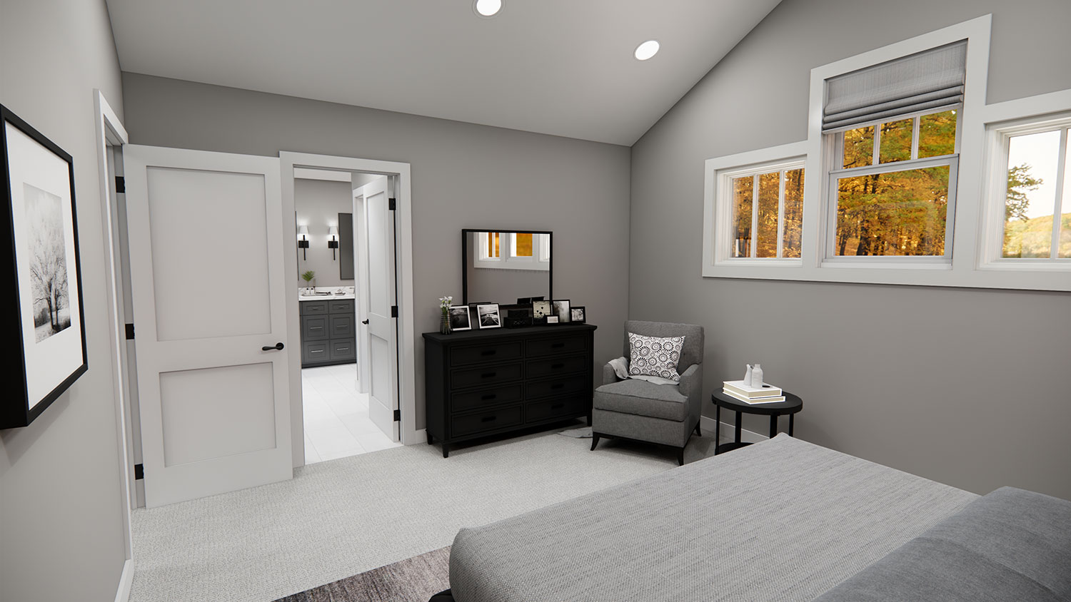 The upper level is dedicated to comfort and privacy, featuring an inviting master suite with a vaulted ceiling. Two additional bedrooms are thoughtfully separated by a Jack and Jill bathroom, providing convenience and functionality.