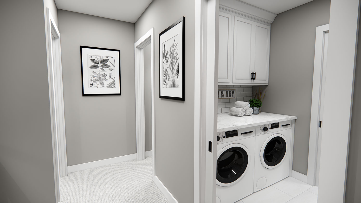 A dedicated laundry room, conveniently located just steps from all three bedrooms, adds to the practicality of this well-designed home.